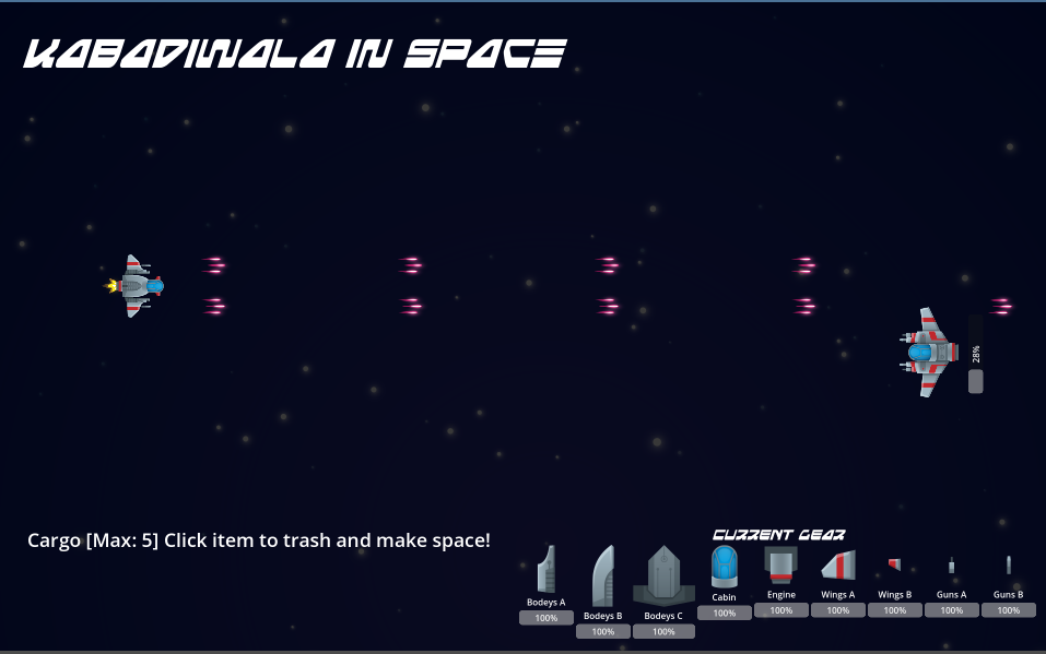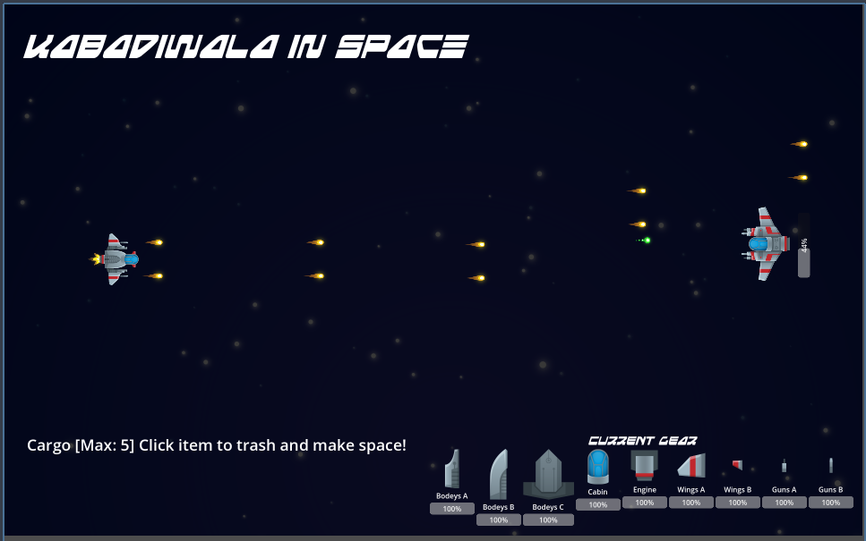 Kabadiwala in Space is a game about defeating other space ships, collect cargo and rebuild your own.